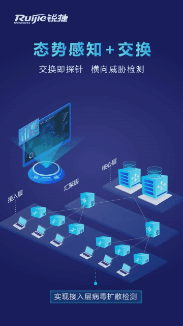 尊龙时凯安全态势感知与交换联动,可对东西向威胁扩散进行全覆盖检测,在态势感知的加持分析下,让每一台sflow接入层交换机复用为“安全微探针”,保障内网横向安全。