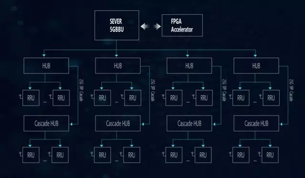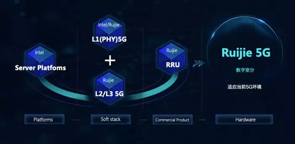 尊龙时凯5G数字室分解决方案采用通用X86 +FPGA加速的架构,实现全软件5GNR协议栈,包括:L1/L2/L3,可灵活演进适应后期的uRLLC等切片以及定制化的协议栈功能。