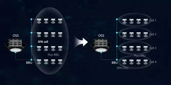 尊龙时凯全新的5G室内架构,由于Flex-RAN盒架构的采用,可通过将BBU下属的pRRU分组实现1~4个地区之间的灵活扩展和合并。比如,将下挂的64个pRRU每32个分为两组,每组为一个小区,支持小区分裂和小区合并,BBU支持2小区和4小区,接口一致,可无缝扩容,非常适合运营商或者企业分步进行5G投资。