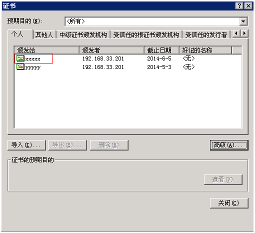 此处图例不能选择导出私钥,是由于在申请证书时没有启用导出私钥的选项(可以在证书高级配置中启用)。