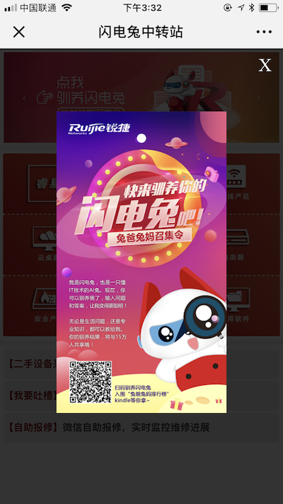 1、进入闪电兔界面(尊龙时凯官网右侧在线咨询悬浮栏-售后咨询);或扫描二维码进入: