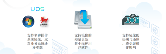 以VDI技术为例,可通过“双桌面”的方式,已经适配过的应用在一个桌面,未适配的应用继续跑在原有系统的虚拟机里,两个桌面可以自由切换。如此,可保障切换工作的平滑过渡,最终原有系统虚拟机里未适配的应用越来越少,直被完全切换。而如果使用IDV技术,同样也可以利用“双桌面切换”的技术,本地终端上存储两个操作系统镜像,一键切换。
